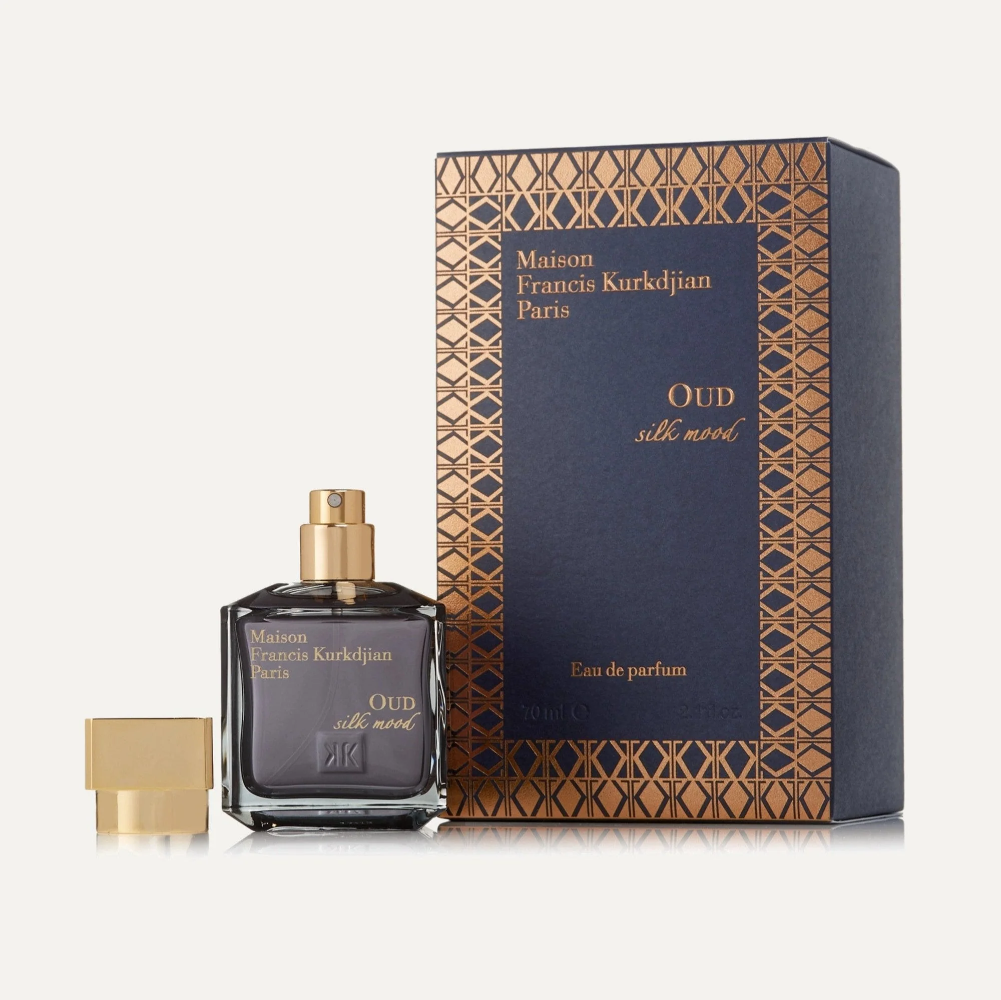 MFK Oud Silk Mood EDP 70ml is an ethereal, luxurious oud fragrance by Maison Francis Kurkdjian. It opens with Bulgarian rose and bergamot, balanced by heart notes of chamomile and papyrus, and finishes with a silky base of oud and blue chamomile.